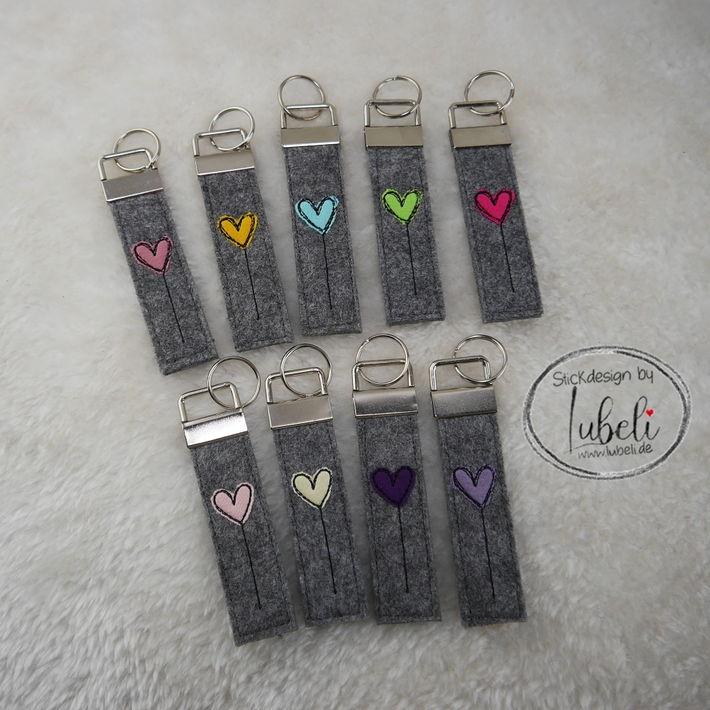 ITH Stickdatei für einen Schlüsselanhänger mit einer fertigen Größe von ca 9,5cm x 2,5cm (gemessen ohne den Schlüsselband Rohling)